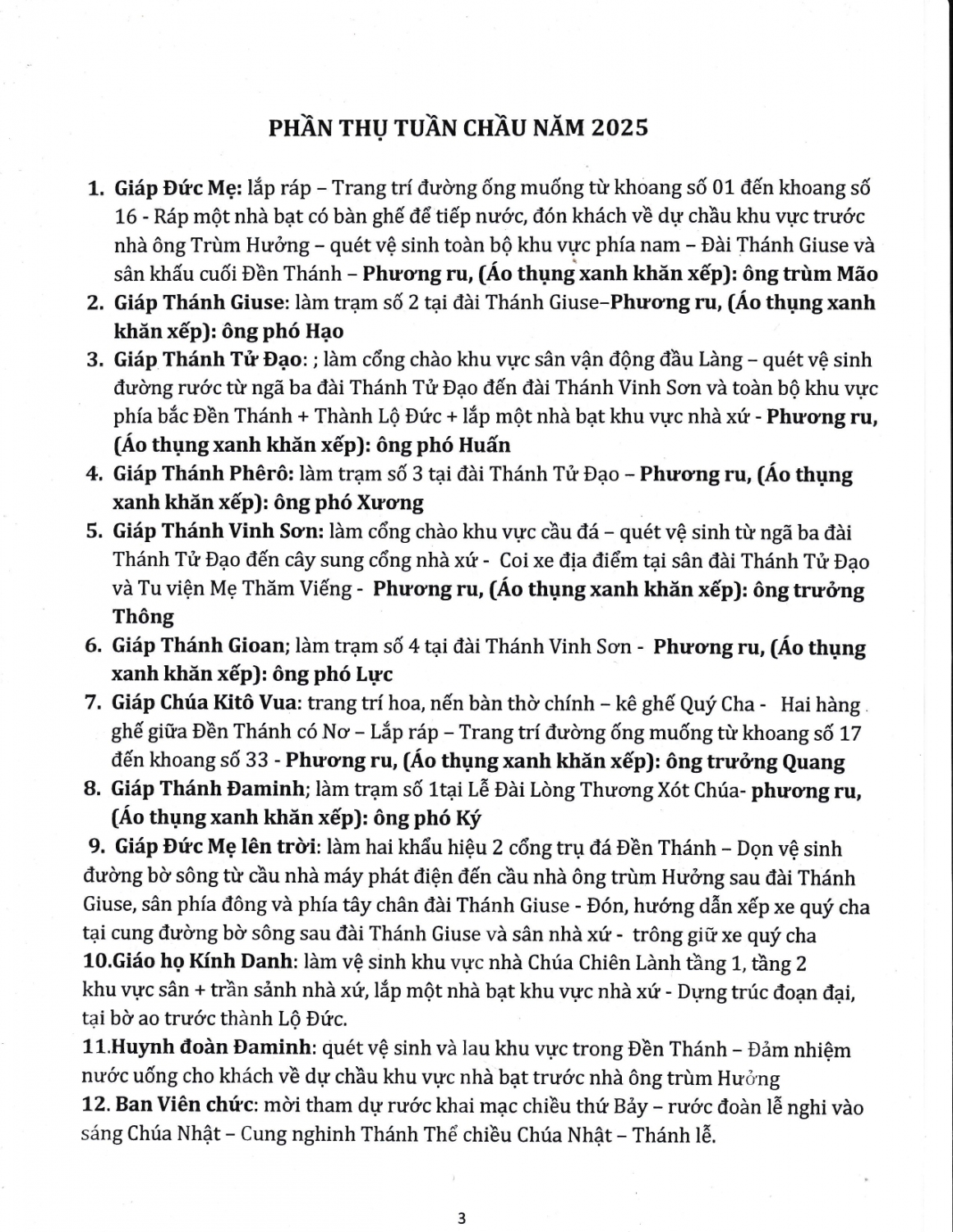Chương trình Tuần Chầu - Giáo xứ Đền Thánh Báo Đáp năm 2025