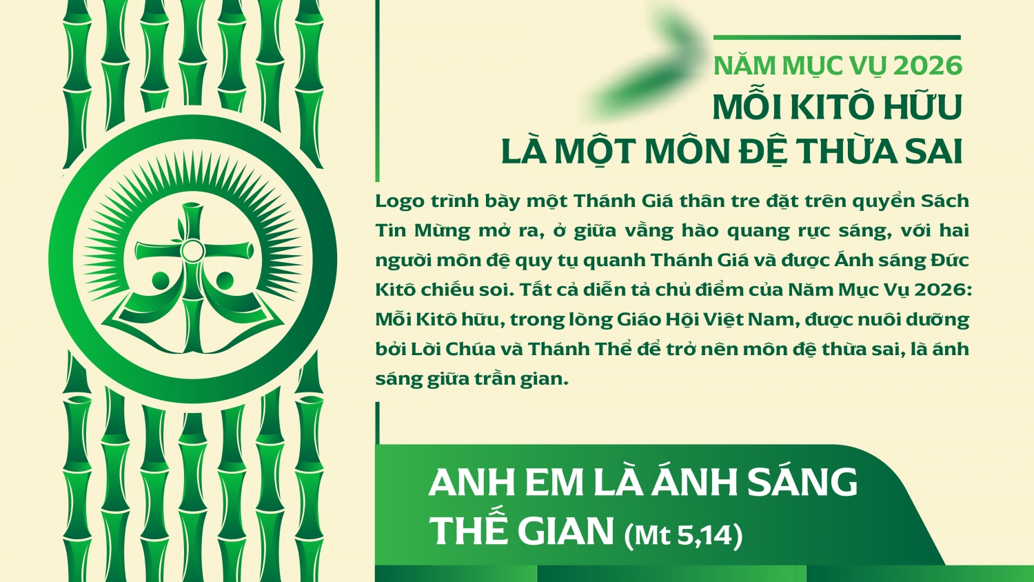 LOGO NĂM MỤC VỤ 2026: MỖI KITÔ HỮU LÀ MỘT MÔN ĐỆ THỪA SAI: “ANH EM LÀ ÁNH SÁNG THẾ GIAN" (MT 5,14)