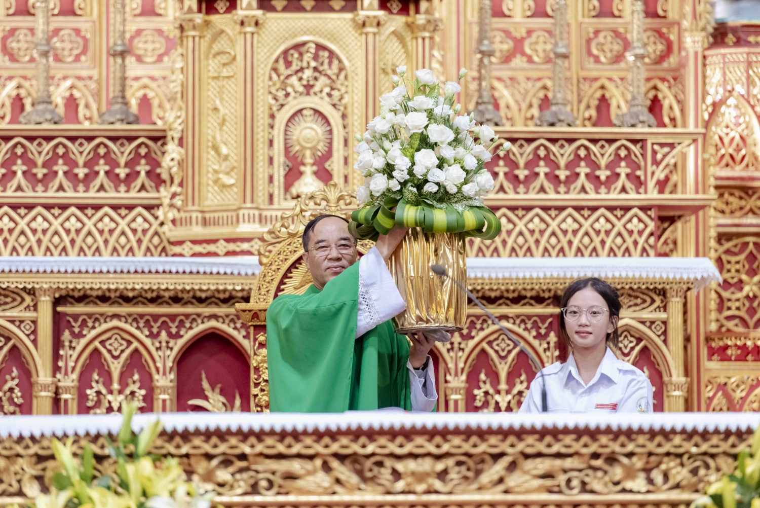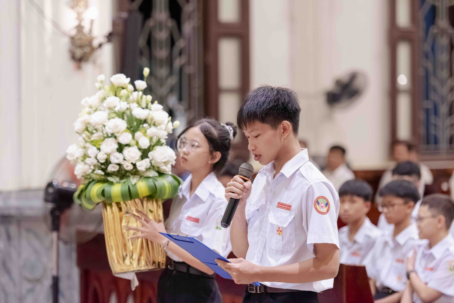 Kết thúc Thánh lễ, 1 bạn đại diện cho các Tân Giáo lý viên dâng lời tạ ơn Thiên Chúa, tri ân Quý Cha, quý Thầy, quý dì và cộng đoàn.